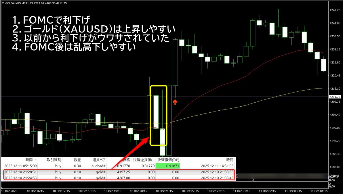 今日(ゴトー日)のチャートも教科書のようにローソク足が動き勝つ事ができました。2025年の夏頃は正直パフォーマンスが悪かったのですが最近は調子が良いです。
