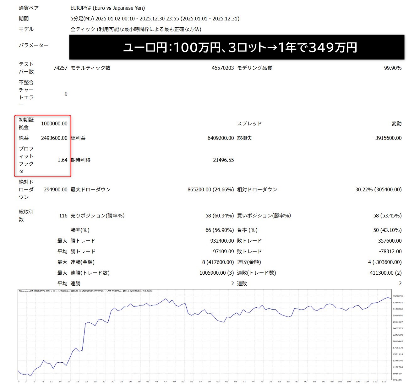 ここが最も重要な懸念点です。チャート(資産曲線)の形をよく見てください。