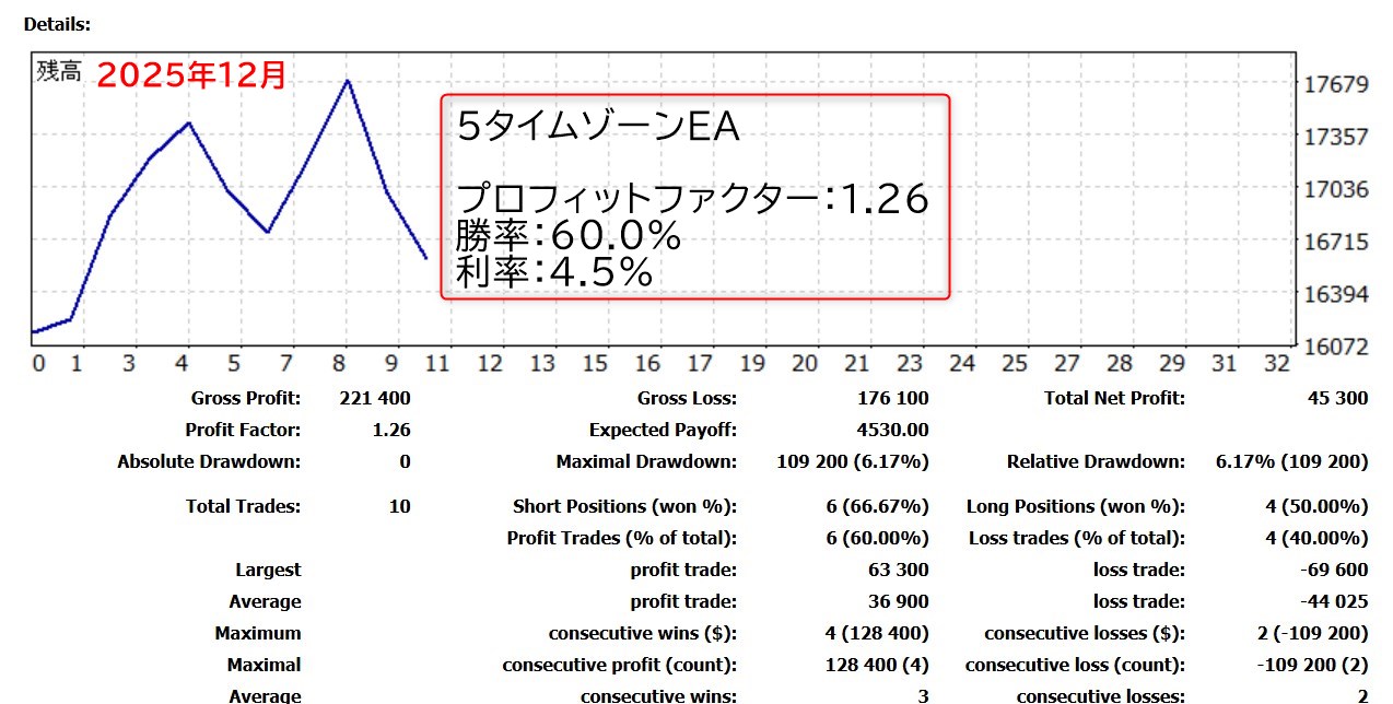 当サイト公開中の5タイムゾーンEA(ゴトー日EA)について、この記事では直近の成績や今月(2026年1月21日現在)の結果を紹介します。