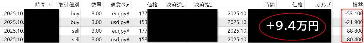 2025年10月10日はゴトー日でトレードがありましたので紹介します。