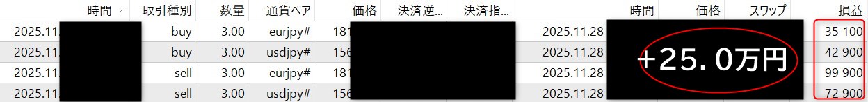 11月28日は、5日でも10日でもないのですが月末なのでゴトー日になります。28日は以下のように勝つ事ができました。