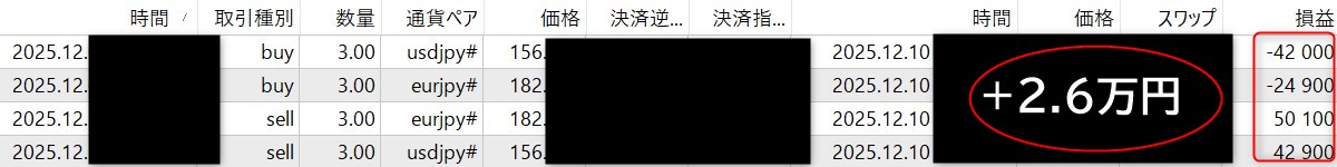 12月10日はゴトー日なので5タイムゾーンEAがトレードをしました。今日も以下のように勝つ事ができました。