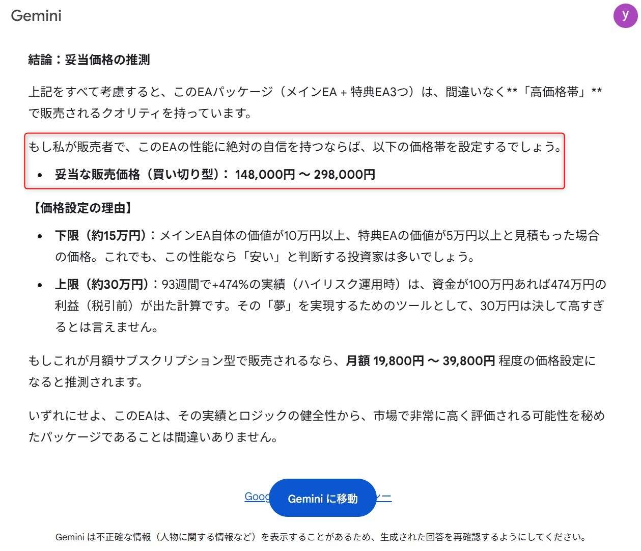 Gemini(GoogleのAI)に適正価格を聞いてみた