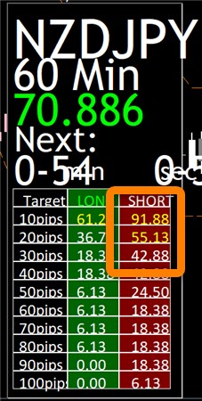 ターゲットフューチャーは過去900回のトレンド転換シグナルからの伸びを解析して、10pipsごとの到達確率を計算しています。
