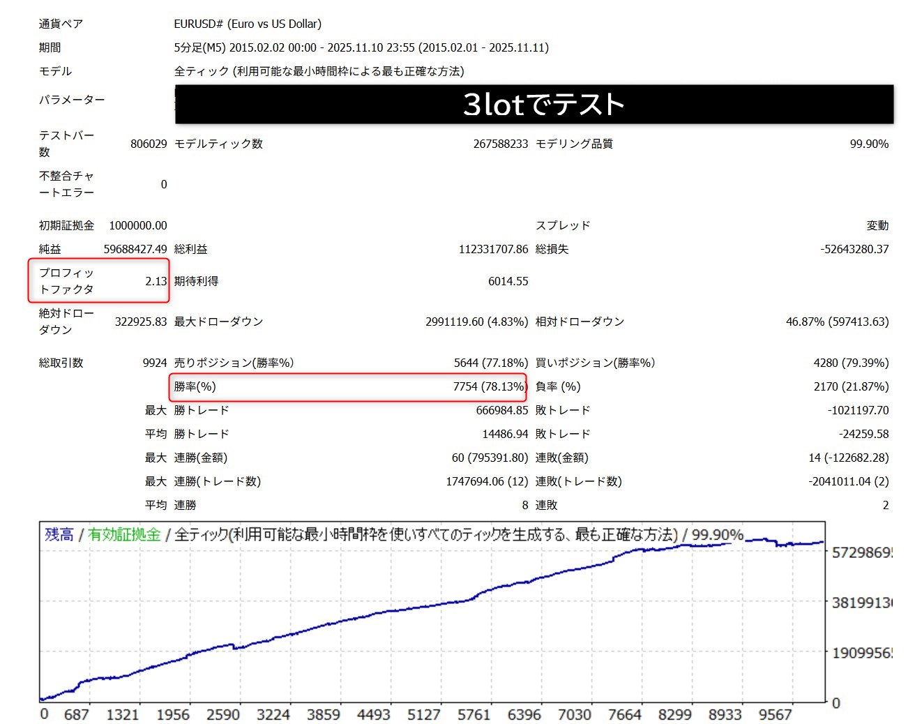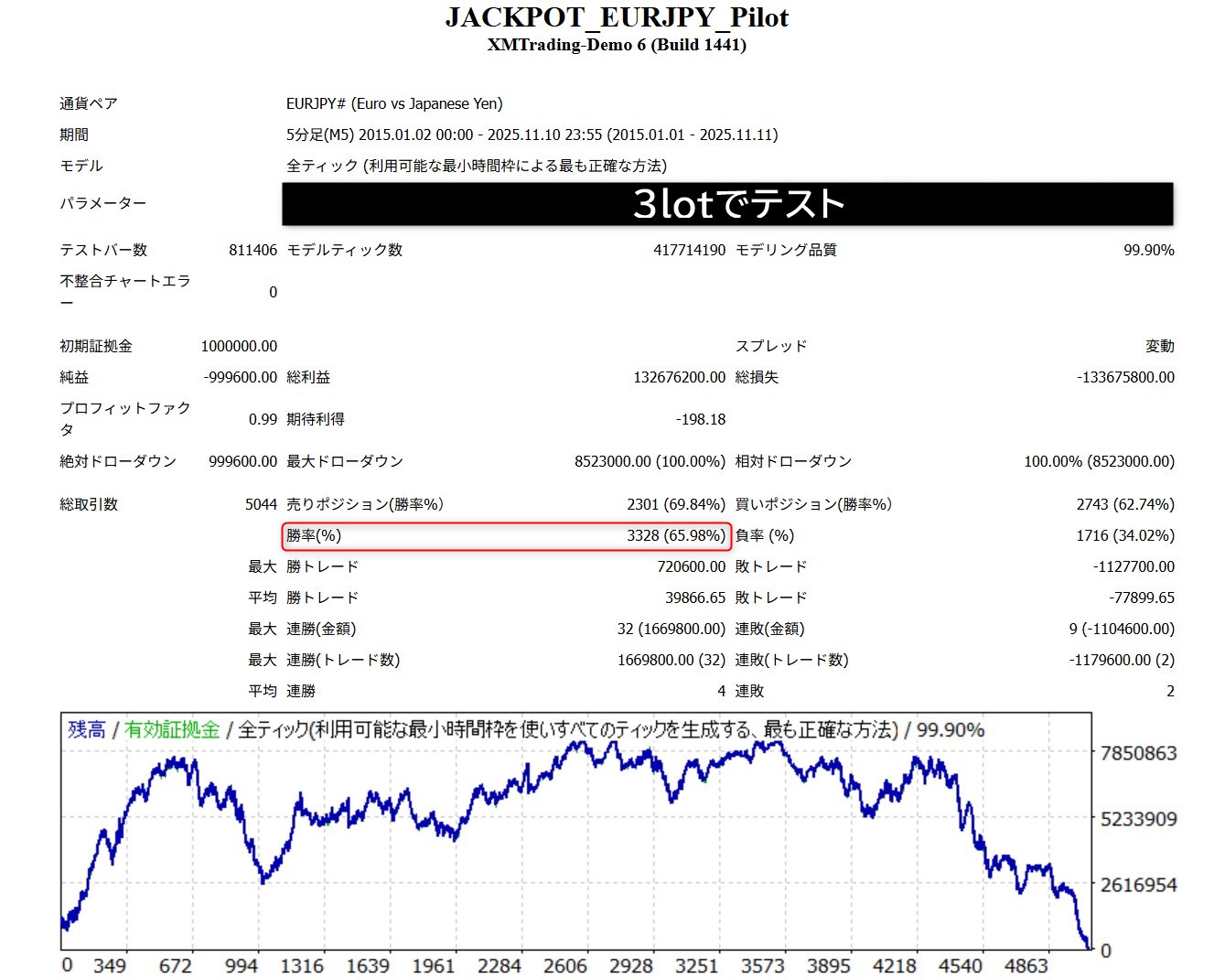 さらに、今回テストしたのはあくまで体験版ですのでもしかしたら購入後のJACKPOTは全く性能が異なるEAの可能性もあります。