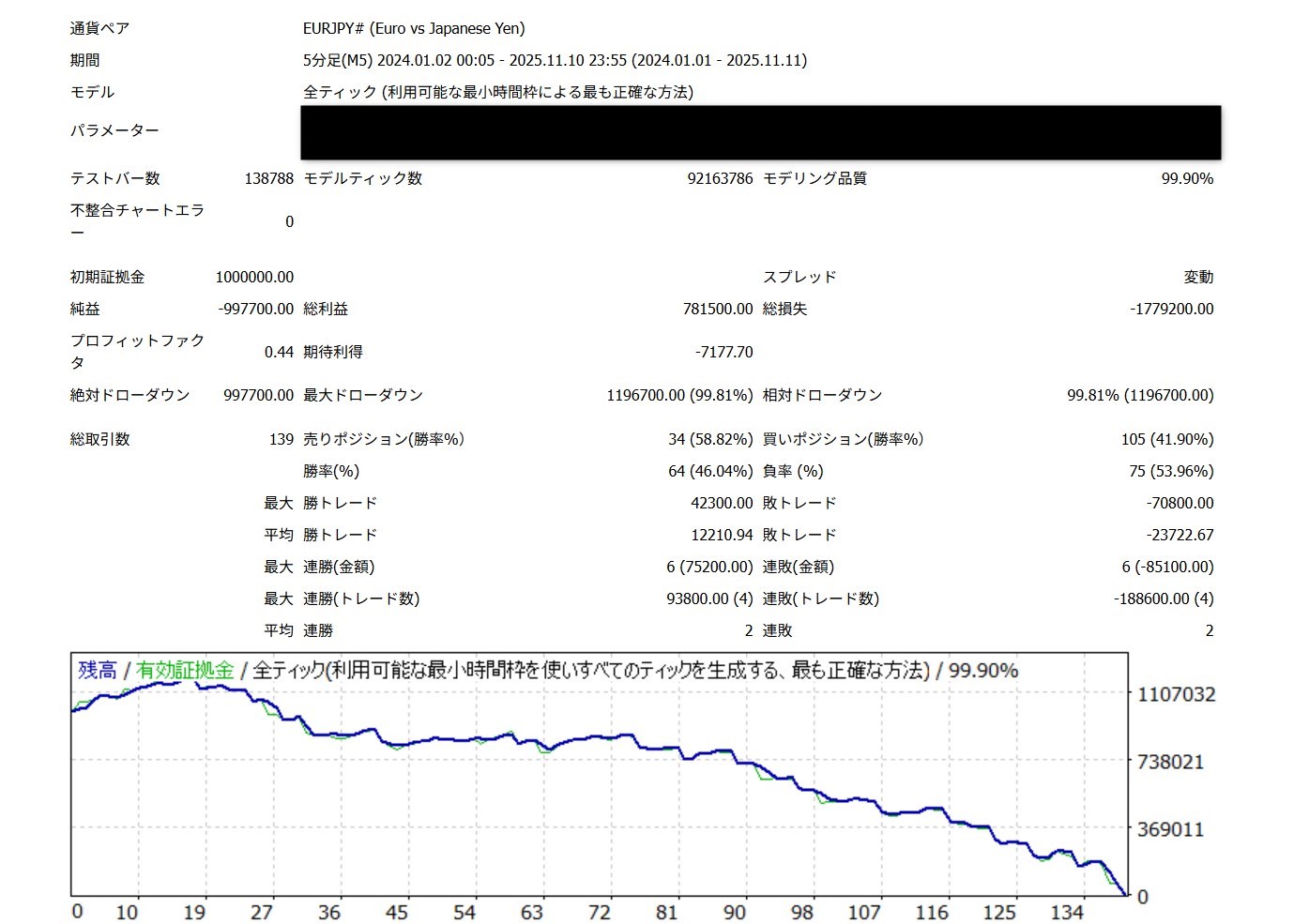 というポイントもあるので、1ロット固定で2024年1月以降でもバックテストをしたのですが負けてしまいました。