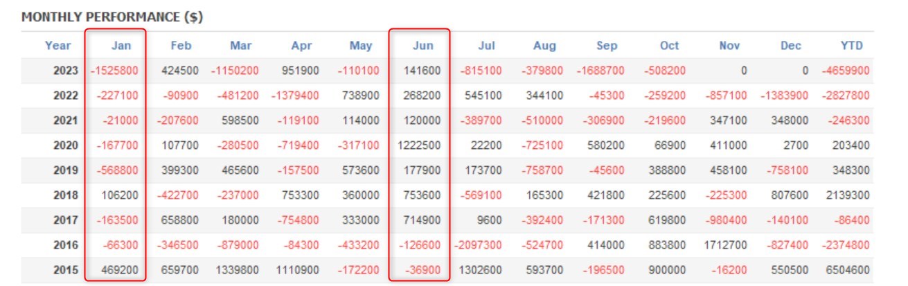 月ごとに見ると、1月でけっこう負けて6月では勝てていることが分かります。
