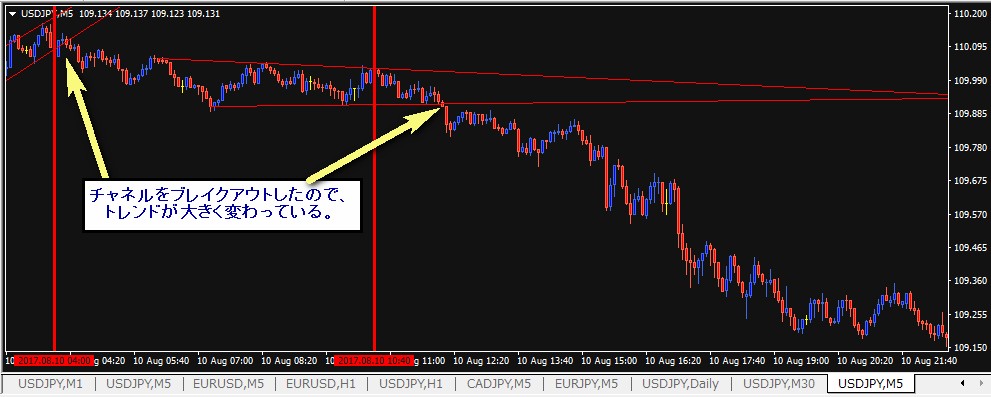 チャネルをブレイクアウトしたタイミングで