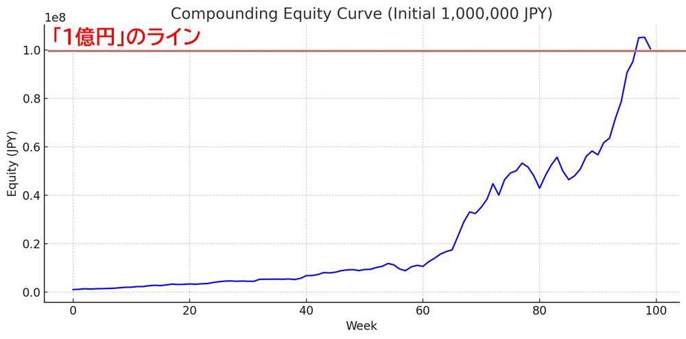 チャート画像の1番はまぁまぁ勝てて2番はそこまでかな?と思われるかもしれませんがこの2番は