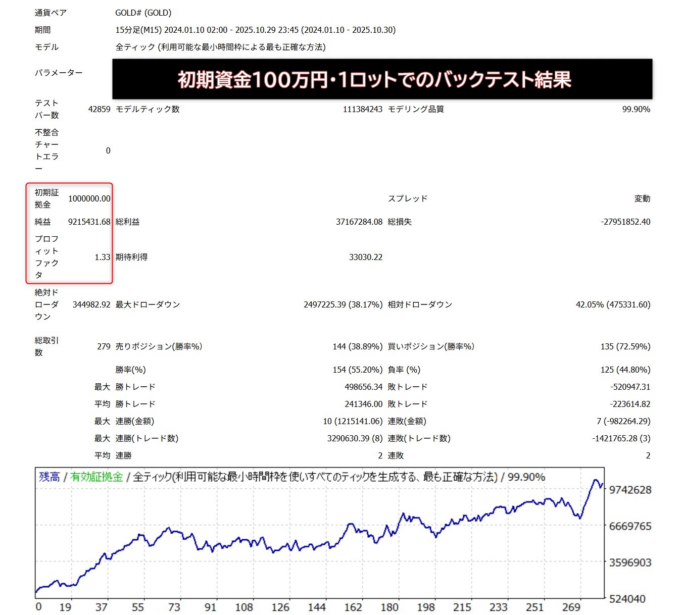 今回紹介したバックテストは、100万円で1ロットという条件でテストしましたが、実際の運用においては例えば安全に