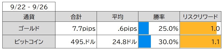 9/22- 9/26のフォワードテスト結果