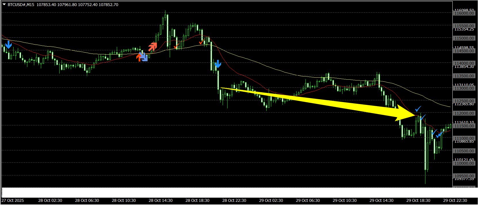 先週のある場面でのシグナルです。黄色い矢印の箇所で勝ちました。