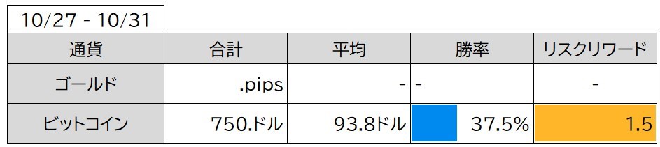 ビットコインは勝ったのですがゴールドは何とトレードが無かったです。