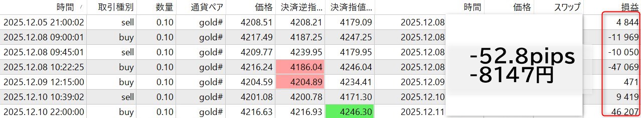 GoldFlowの自動売買のトレード履歴が分かる画像は以下です。