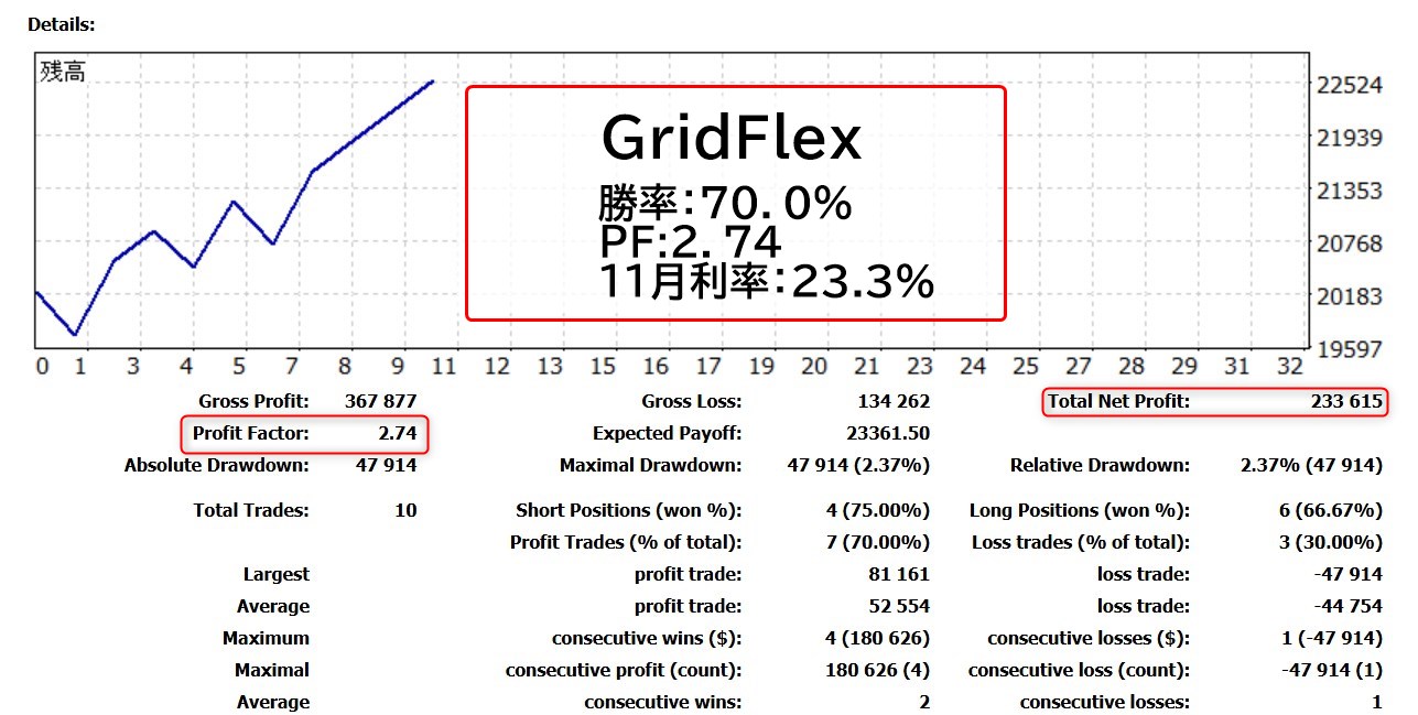 【11月利率+23.3%】GridFlexの最新フォワードテスト・トレードの紹介と、期間限定 単体販売のお知らせ