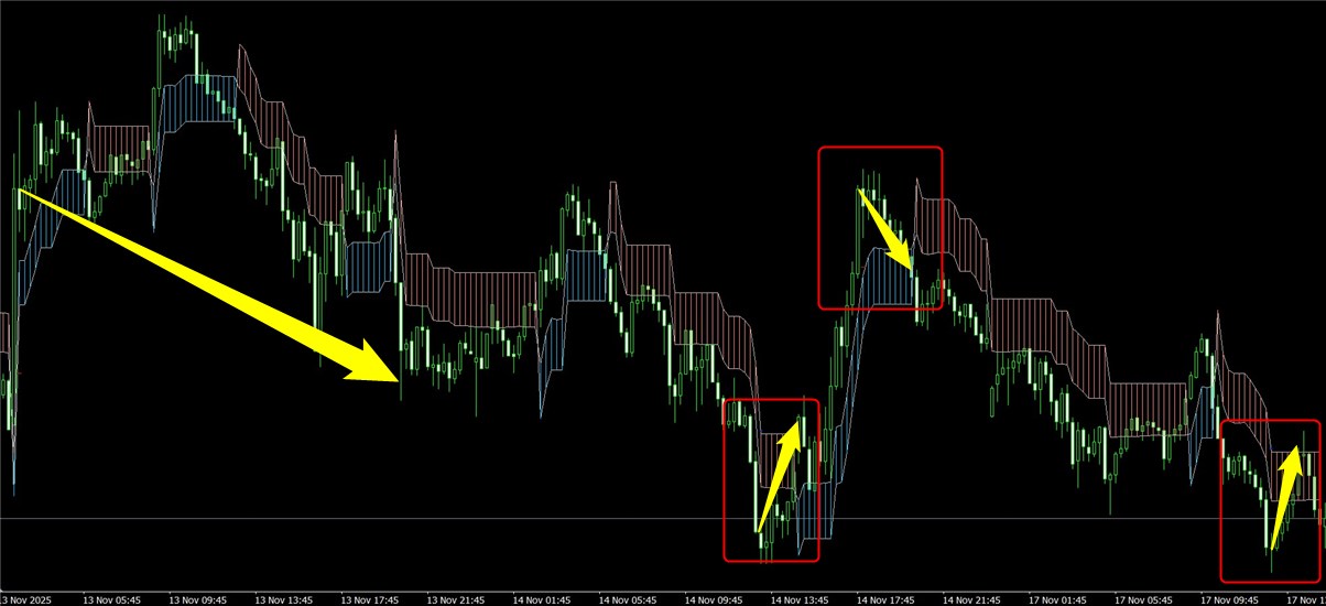 これは直近のチャート画像で黄色い矢印がトレードのエントリーと決済です。