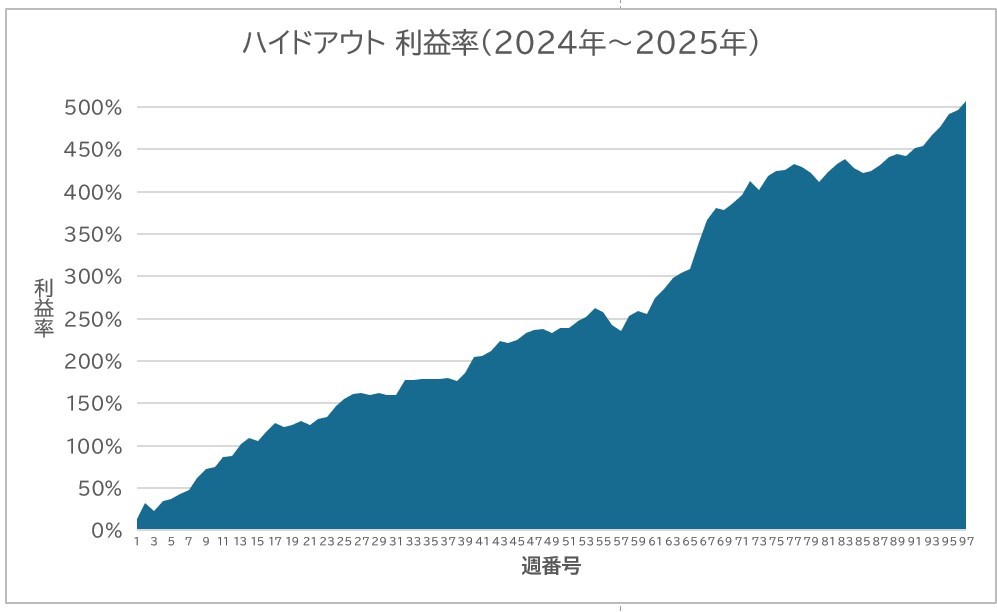 - 毎週の利回りは5%前後で、複利運用で10000%超
