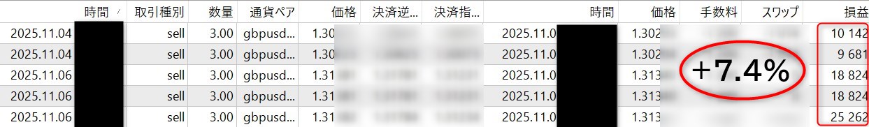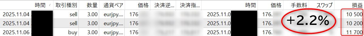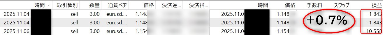 スプレッド(手数料)やスワップ含めた利率で、使用FX業者はスリートレーダーです。