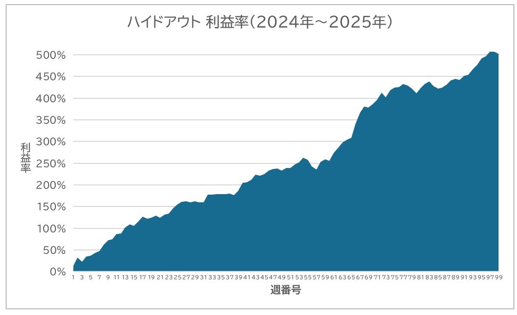 この記事ではハイドアウトのフォワードテスト結果とトレード事例・累計複利結果を紹介しています。
