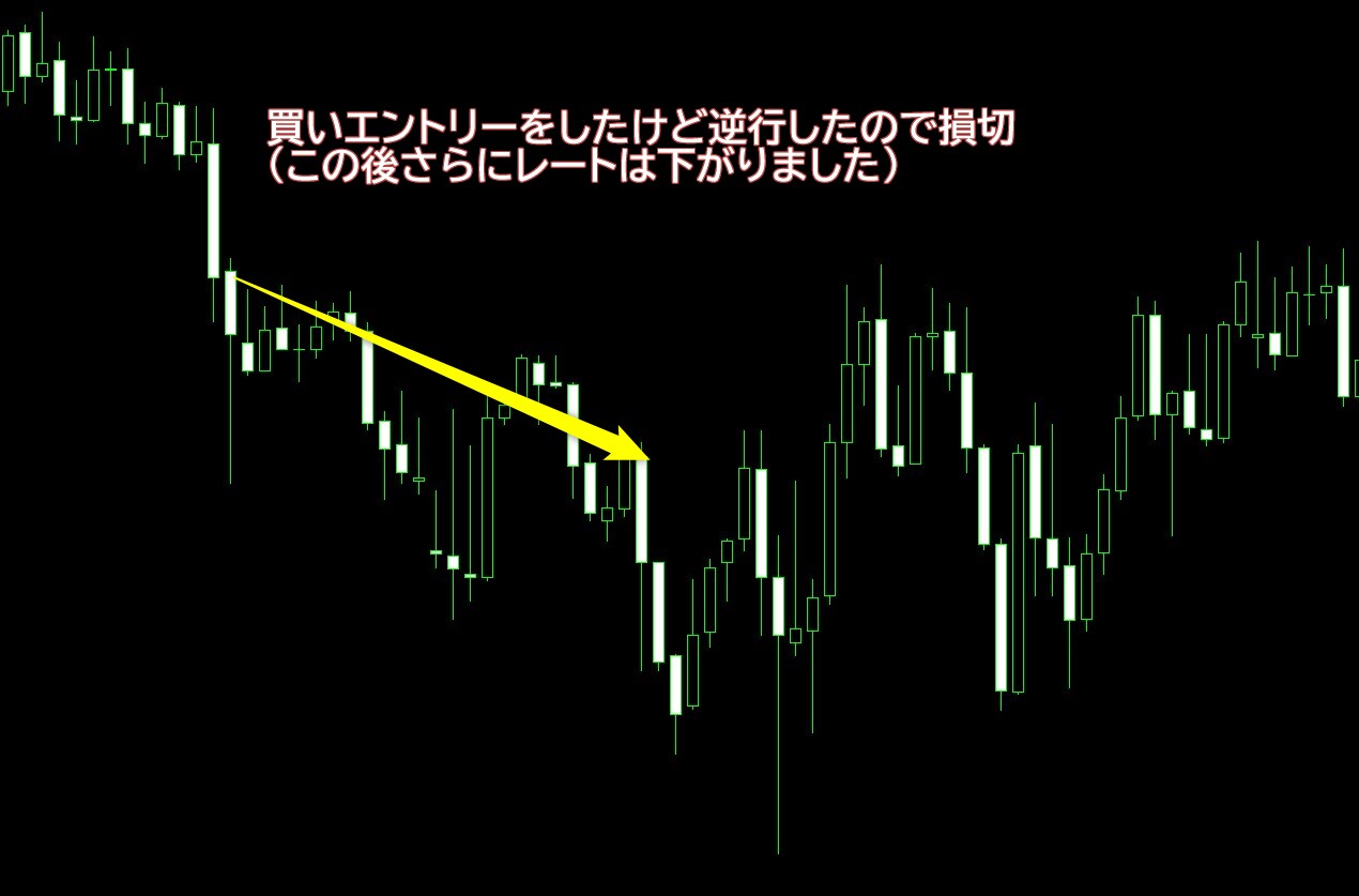 負けたトレード事例を紹介します、以下のチャートを見てください。