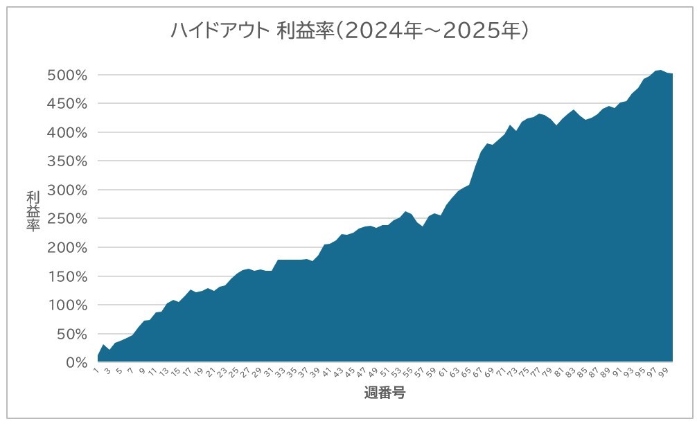 この記事ではハイドアウトのフォワードテスト結果とトレード事例・累計複利結果を紹介しています。