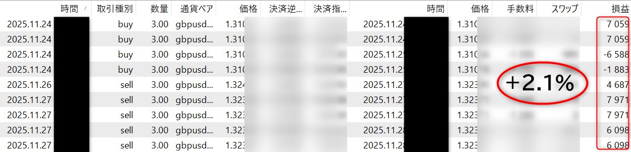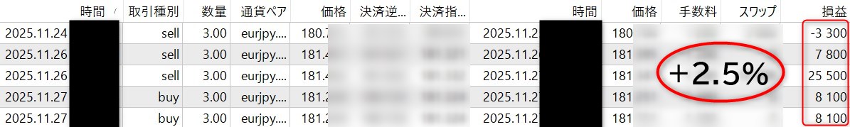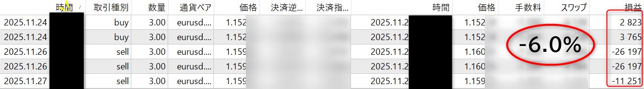 - 対象通貨ペア3つの内、2つでプラス、1つでマイナスでトータルでマイナス