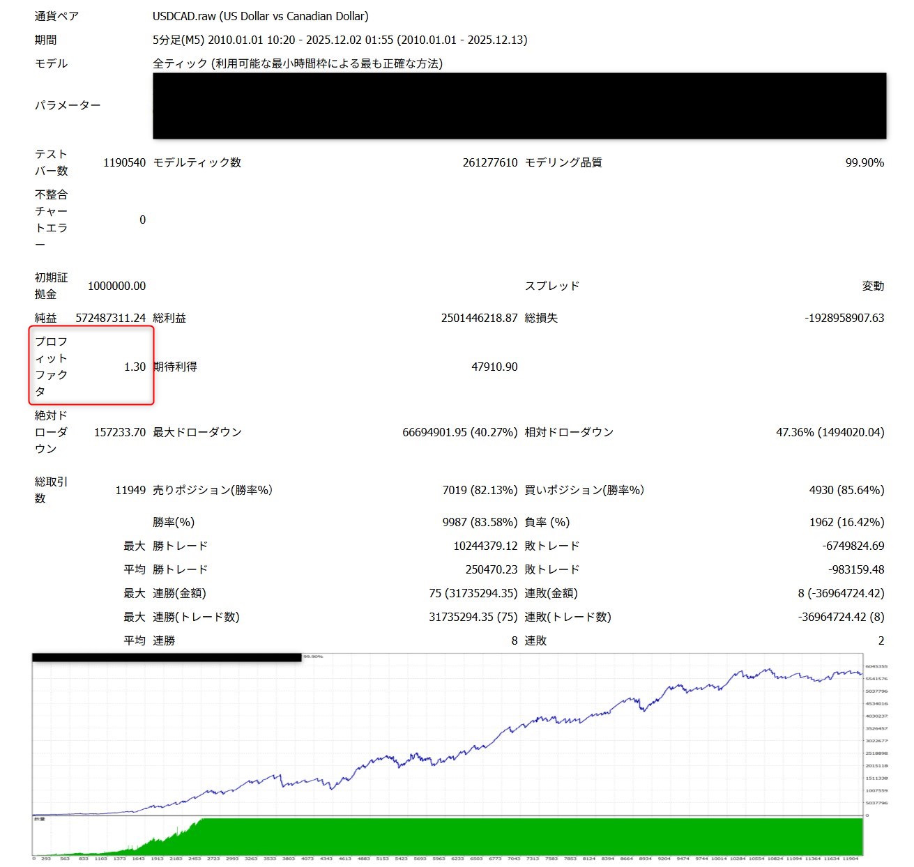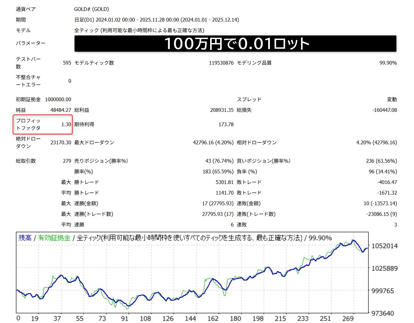 ドローダウン率が低いのは100万円に対して0.01ロットでテストしているから、ある種当然の結果になります。