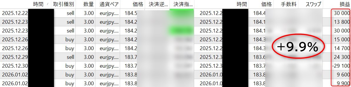 ユーロ円(+9.9%)
