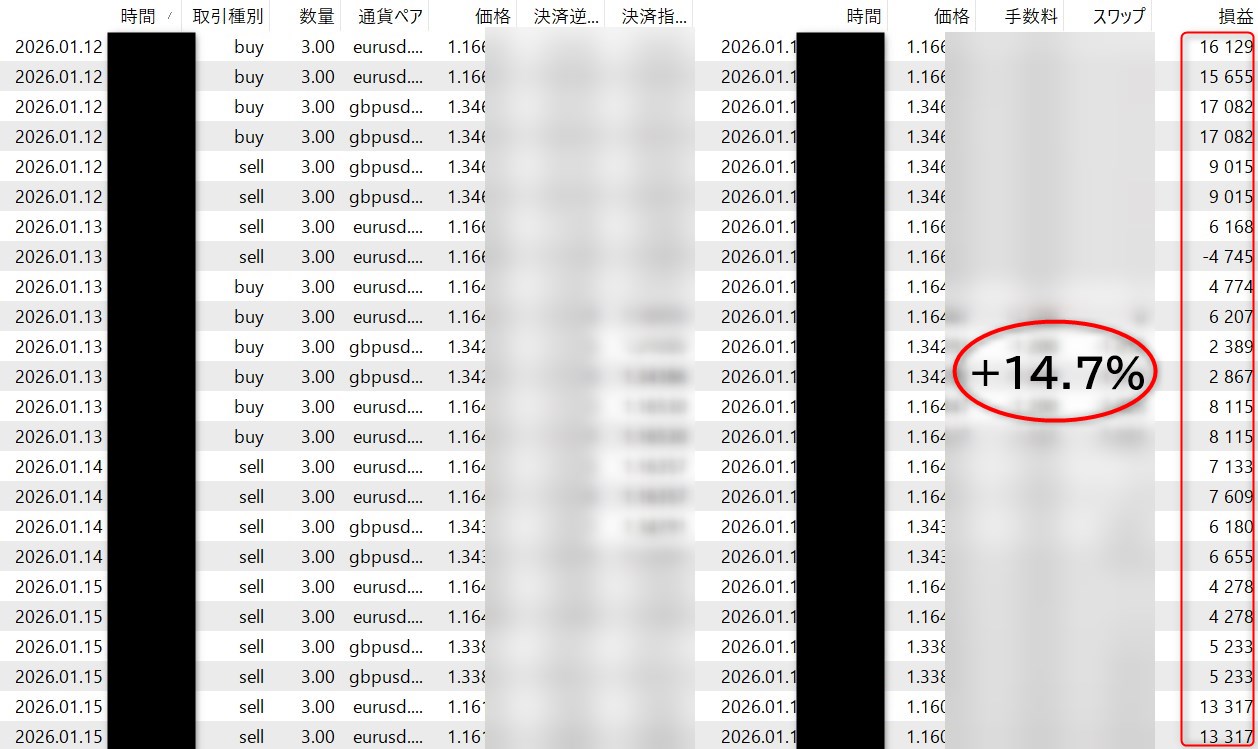 1週間の成績(推奨通貨ペア合計:+14.7%)