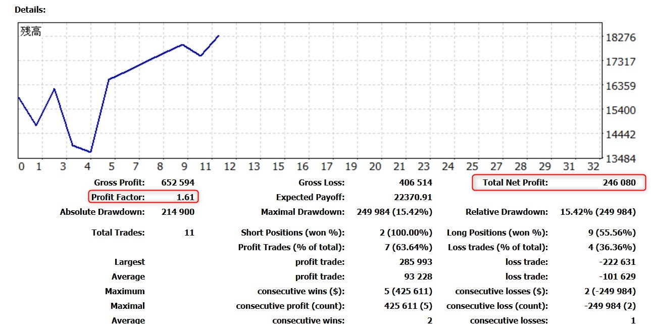フォワードテストのプロフィットファクターは2.09で月利は+30%です。