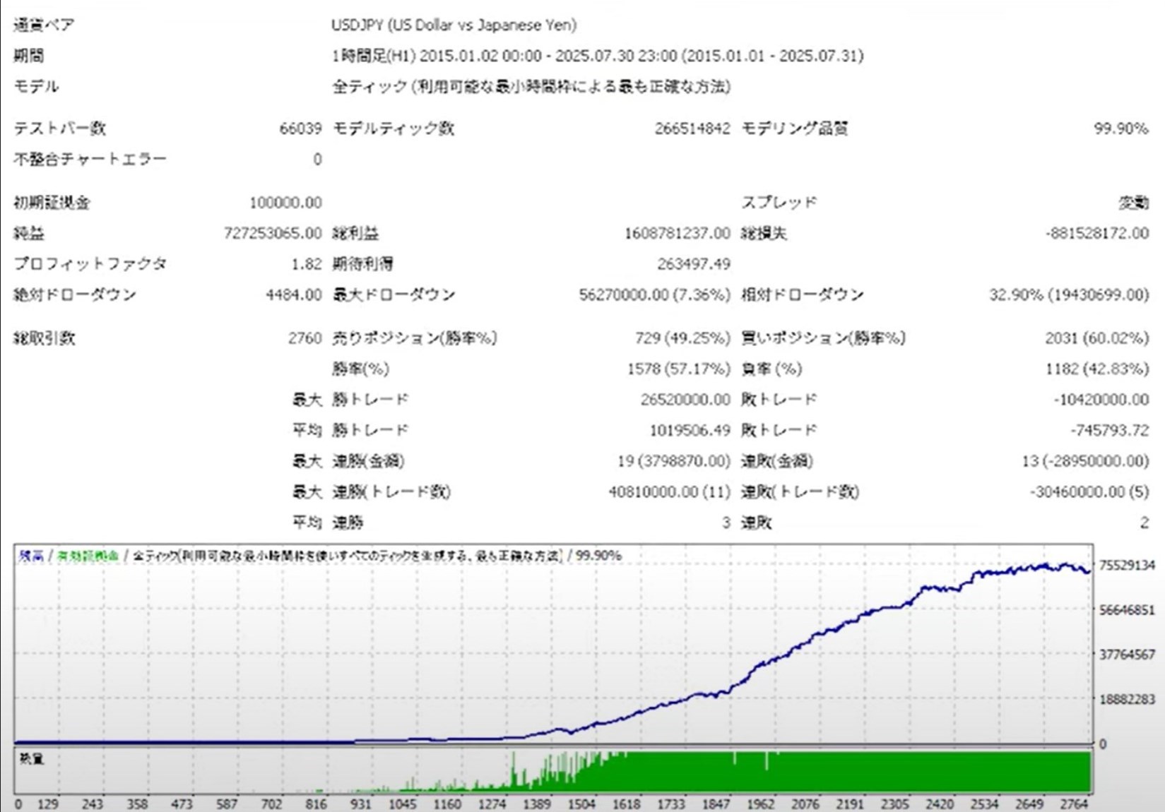 勝率そのものは低すぎるというものではなくリスクリワードの値によっては十分だったりします。そもそもゴトー日EAは勝率がめちゃくちゃ高いとも限りません。上のバックテスト結果では勝率57%です。