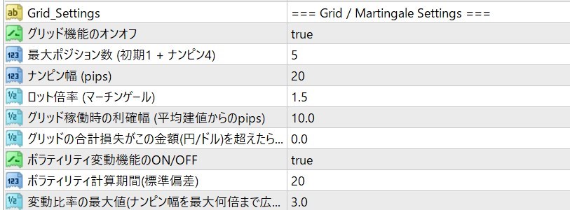 また、上のパラメーター画像を見ていただくと分かりますが、追加エントリーする基準(どこまで逆行したら追加エントリーするか)は動的に変更することもできます。