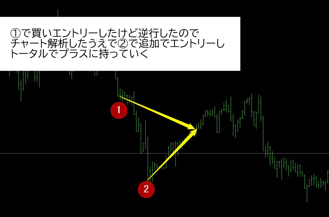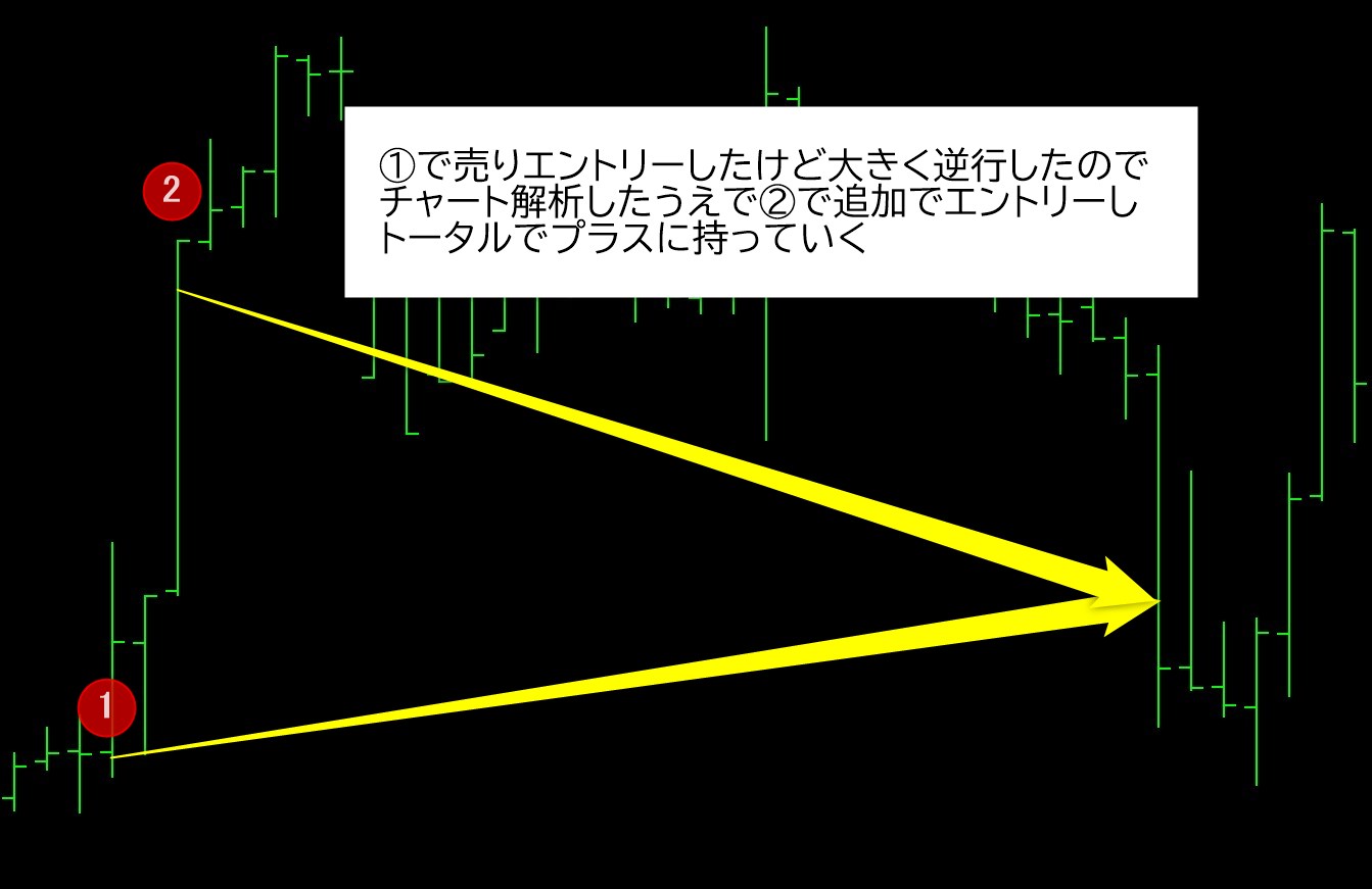 このチャートもエントリーして逆行したので追加エントリーをしてトータルで勝ちました。
