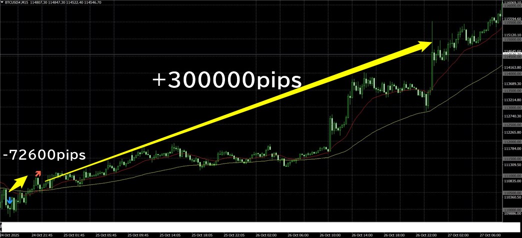 黒い矢印があゆみ式FXの標準ルールでのトレード結果です。