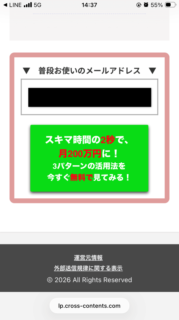 と思いつつ、スマホ画面をスクロールしていたらメルアド登録箇所もあったので試しに登録してみました。