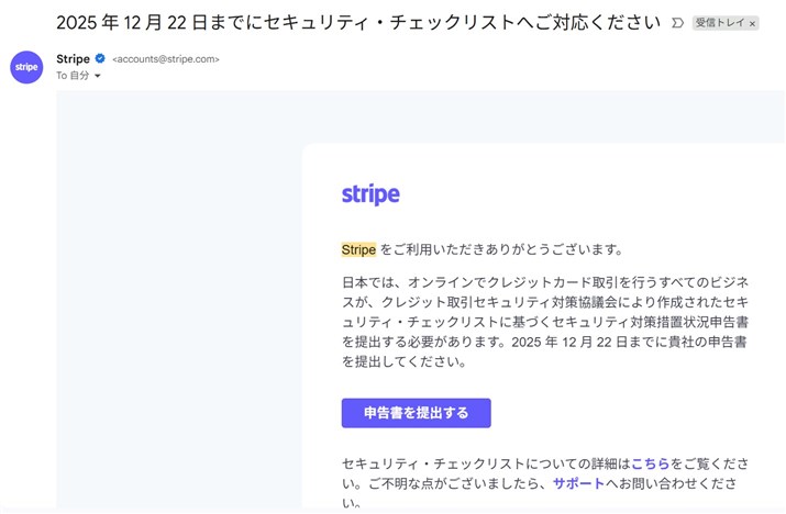 当サイトに特別に要請があったものではなくすべてのstripe利用者、利用会社への要請です。