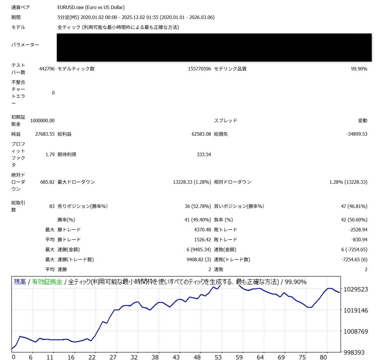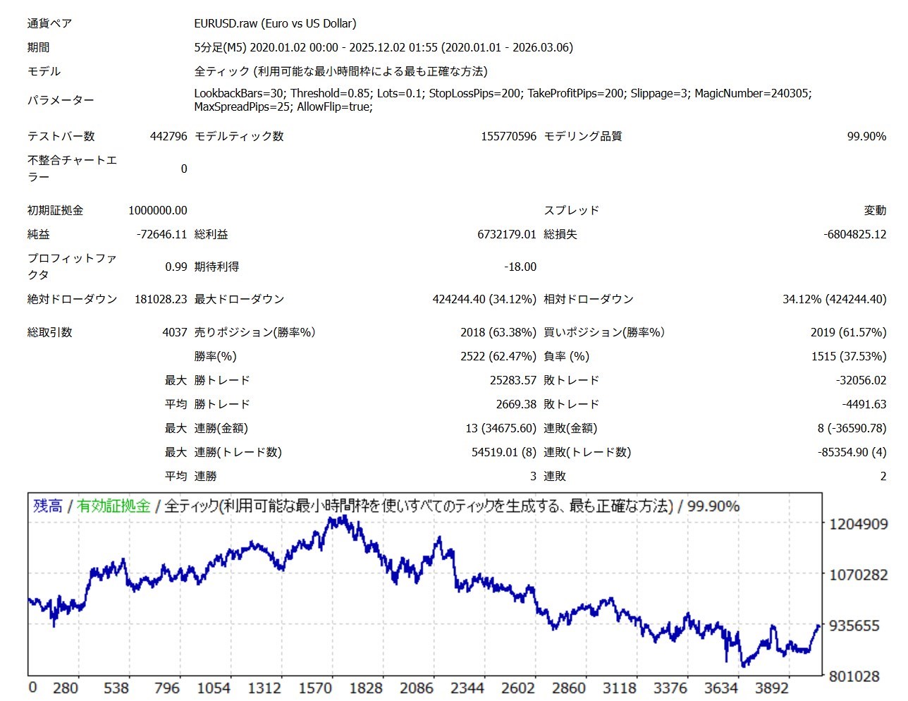 肝心のスピアマン波動FXというEAについて、そのパフォーマンスを見てみたいのですが2026年3月7日ではバックテスト結果はありません。