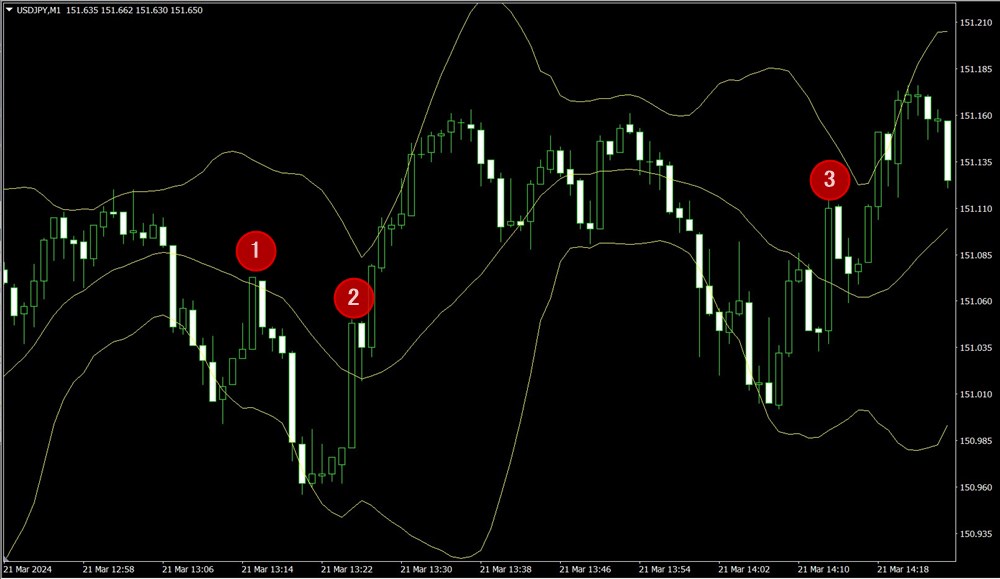- レートがボリンジャーバンドを超える