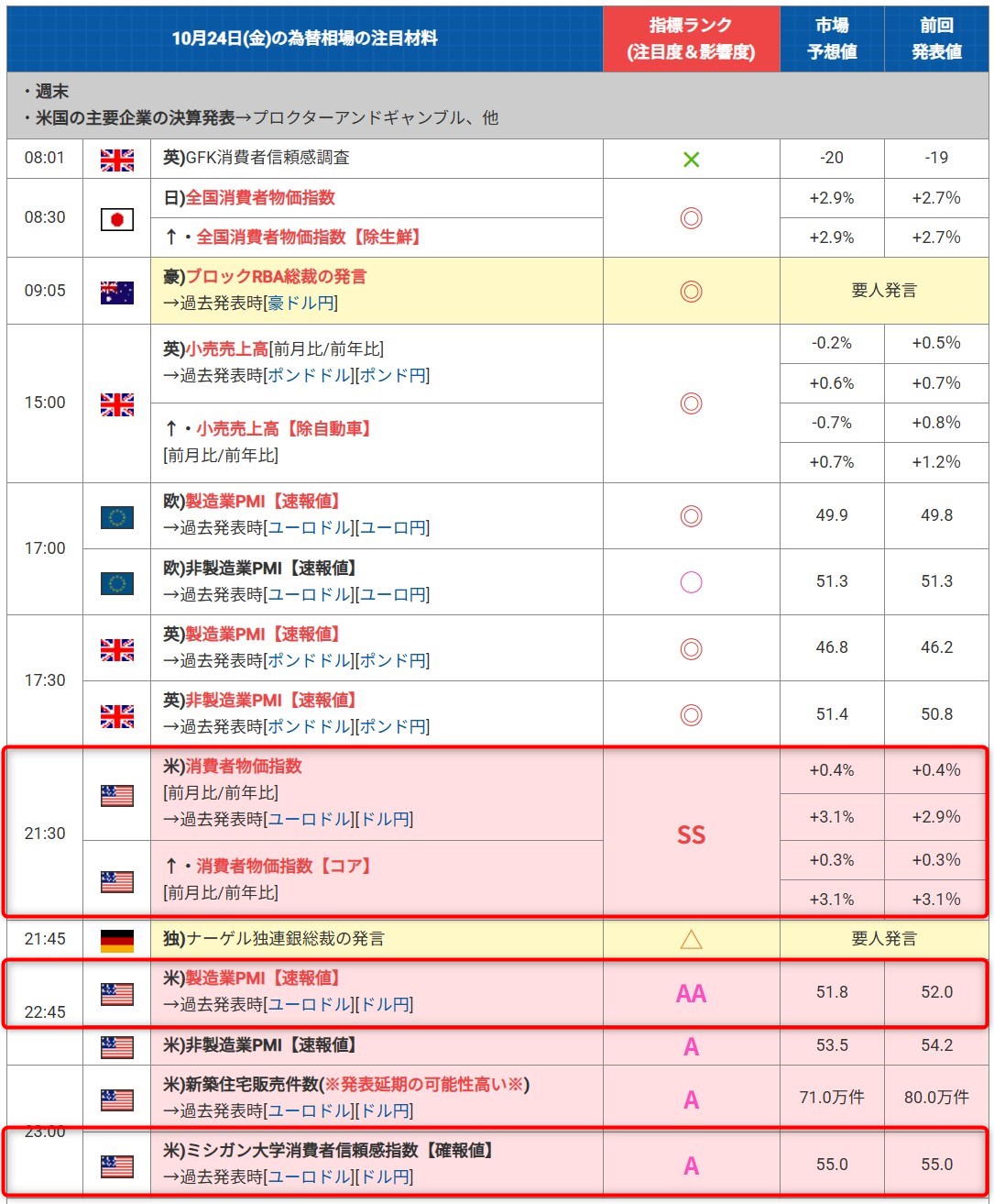 赤い枠で囲った経済指標は特に注意した方が良い経済指標になります。