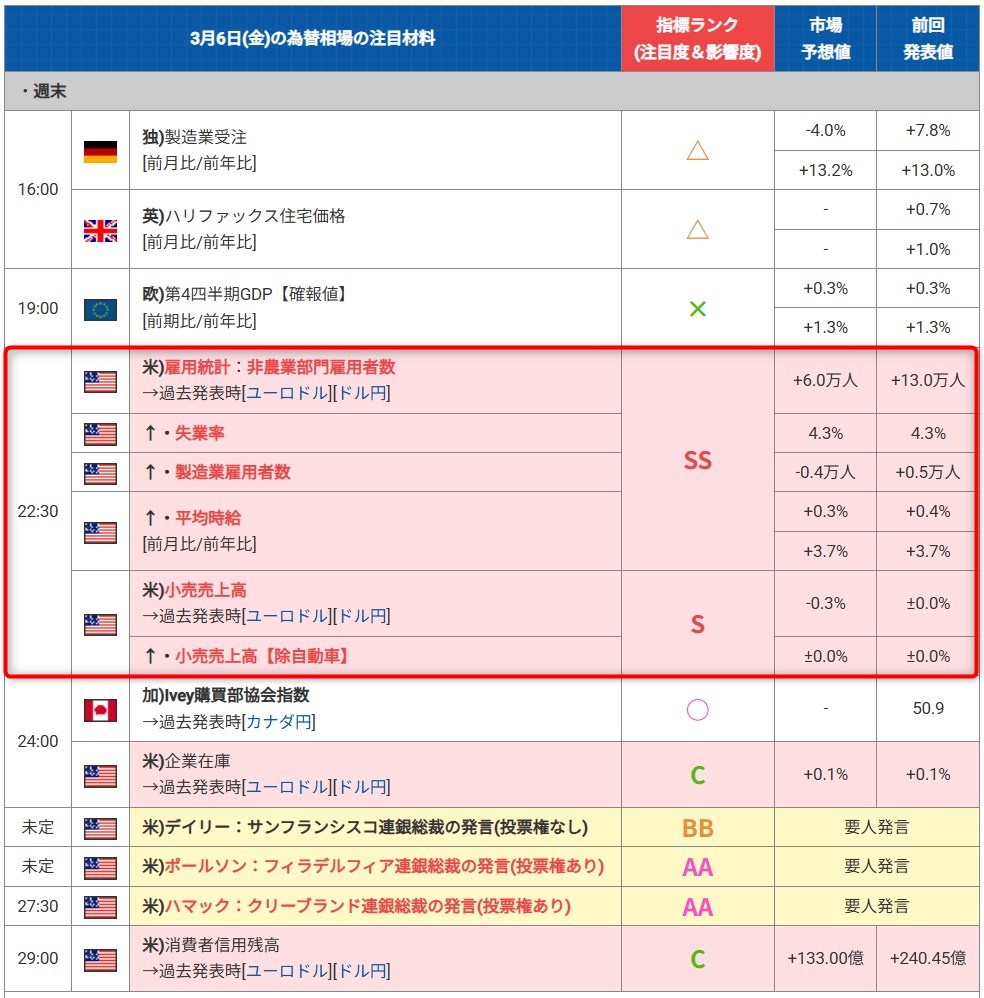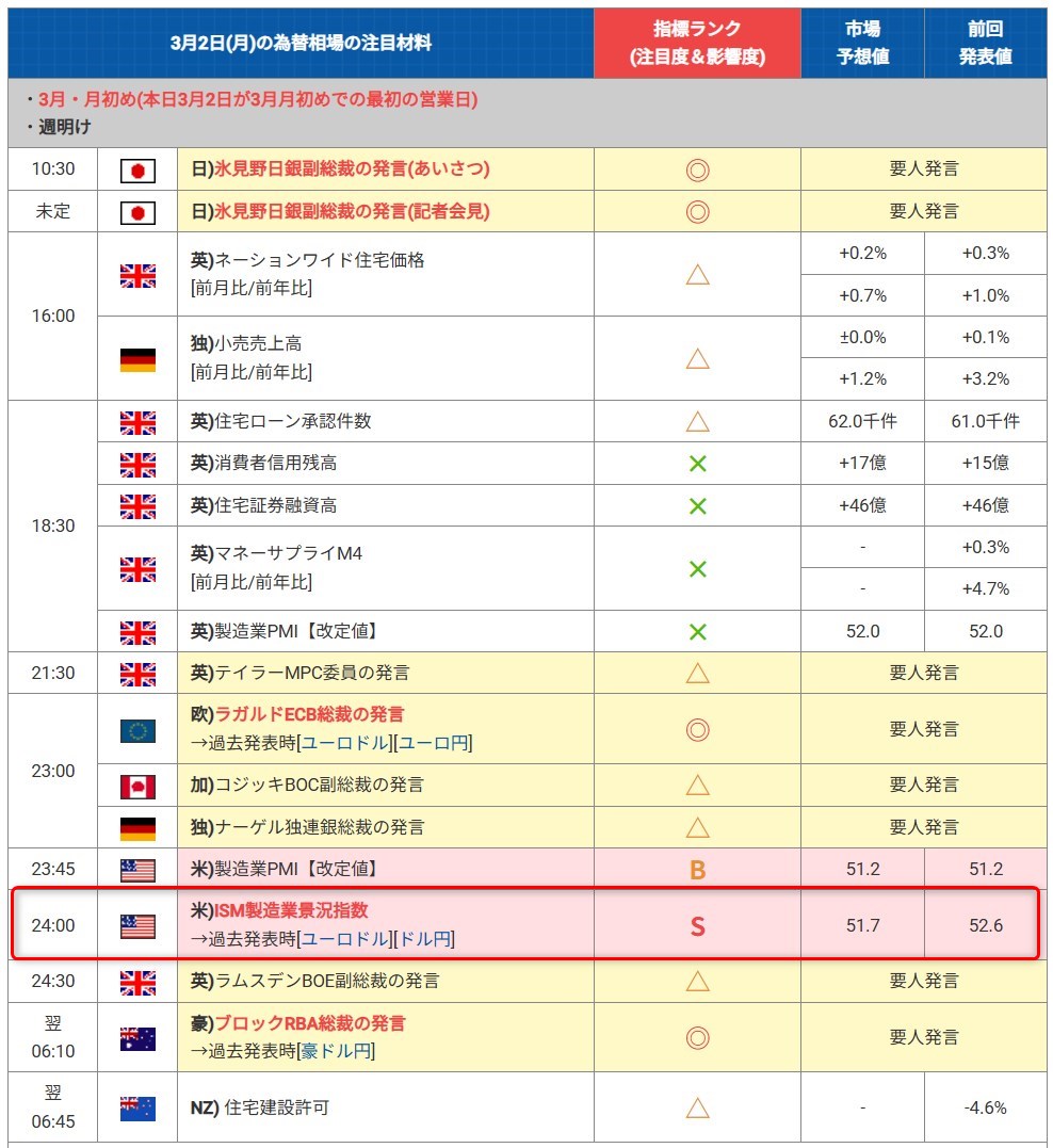 経済指標・要人発言(3/2~3/6)