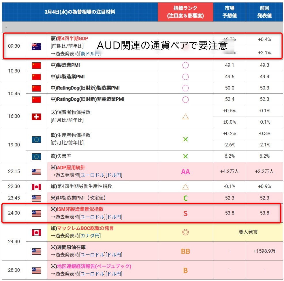 - 豪)第4四半期GDP(09:30)※AUD系の通貨ペアは要注意