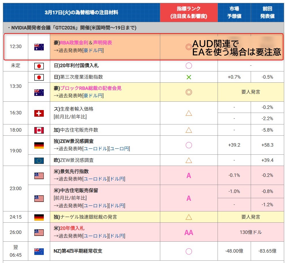 - 豪)RBA政策金利&声明発表(12:30) ※AUD関連でEA使っている場合は要注意