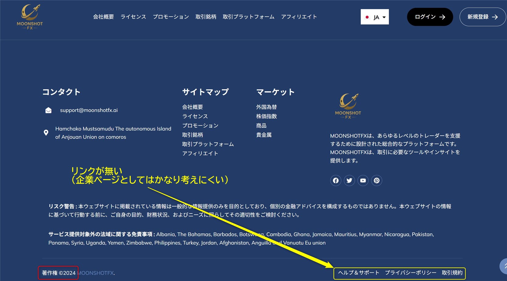 MoonshotFXのページにアクセスして色々調査してみました