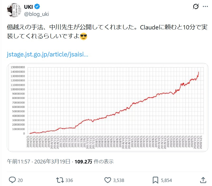 このポストは株式投資に関する「ある論文」を紹介していて、その論文の内容をAIでコード化したら良い結果になったよ、という内容です。