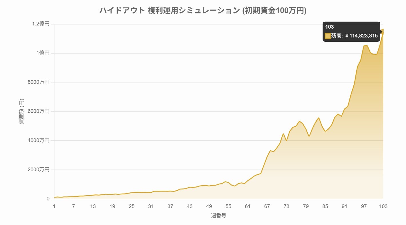 公開しているトレード履歴を複利モードで実践していたら1億円を超えています