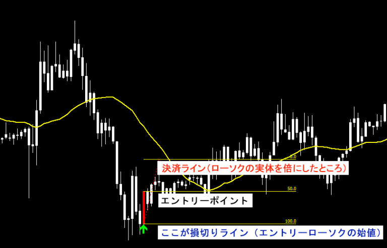- ローソク足の始値が損切りライン
